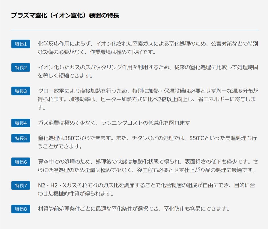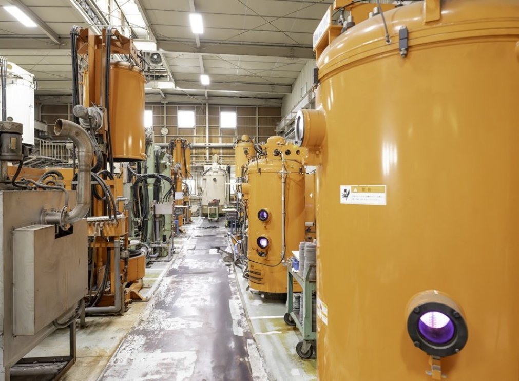 プラズマ(イオン)窒化法は、1932年にドイツでB. Berghausによって発明され、1967年頃から商用化が進められました。当社は新時代の熱処理として本技術にいち早く着目し、1973年に国産第一号機を完成、国内初のイオン窒化装置の製造・販売を開始しました。