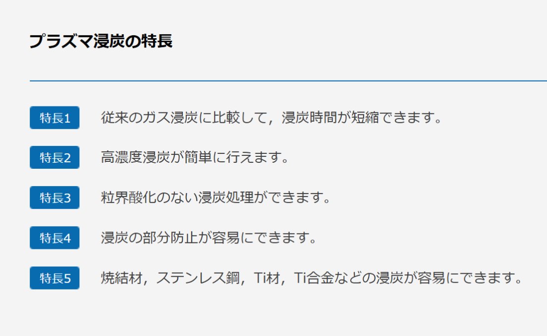 金属材料表面に炭化物を形成し、機械的強度を向上させるプラズマ熱処理装置です。当社が開発したプラズマ浸炭法は、クリーンな作業環境の中で従来のガス浸炭よりも短時間で高精度の安定した品質が得られ「高濃度浸炭」や「難浸炭材への応用」など優れた特徴が認められています。