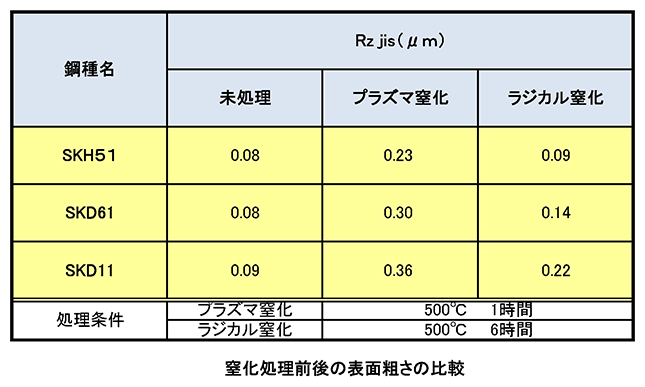 ラジカル窒化の場合、化合物層を除去する必要がないため、仕上げ作業が容易にできます。